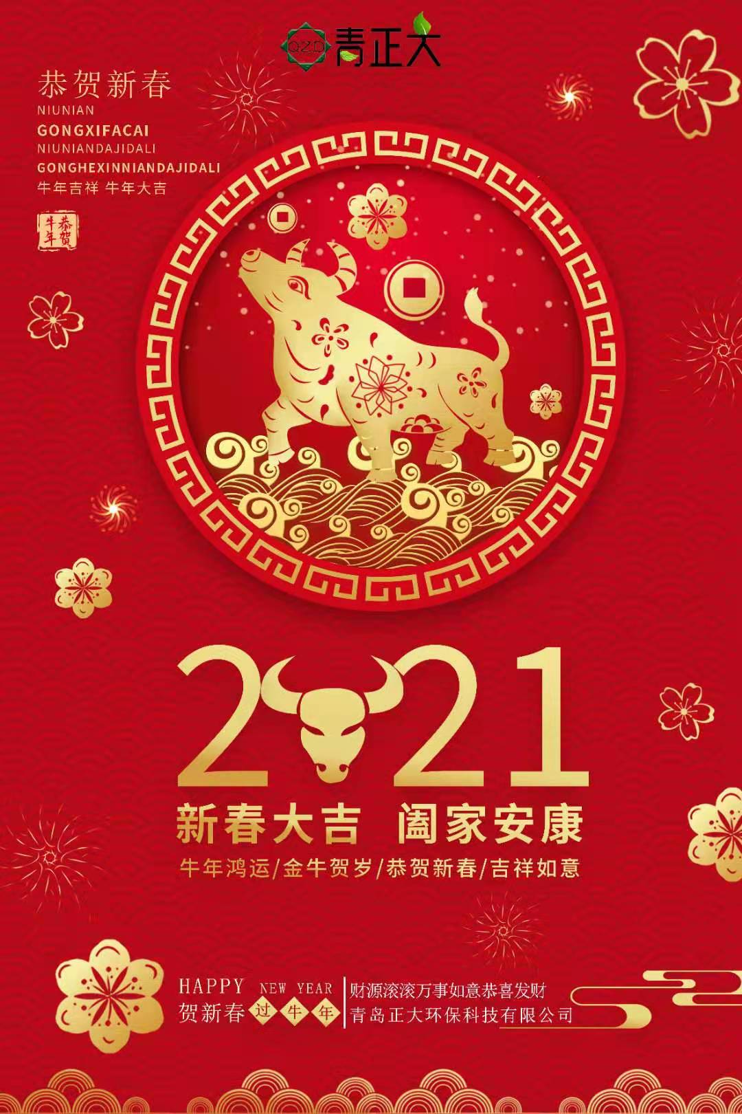 值新春佳節(jié)到了之際,青島正大環(huán)保科技有限公司全體員工恭祝大家新年快樂(lè),健康幸福!